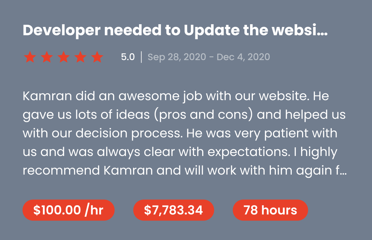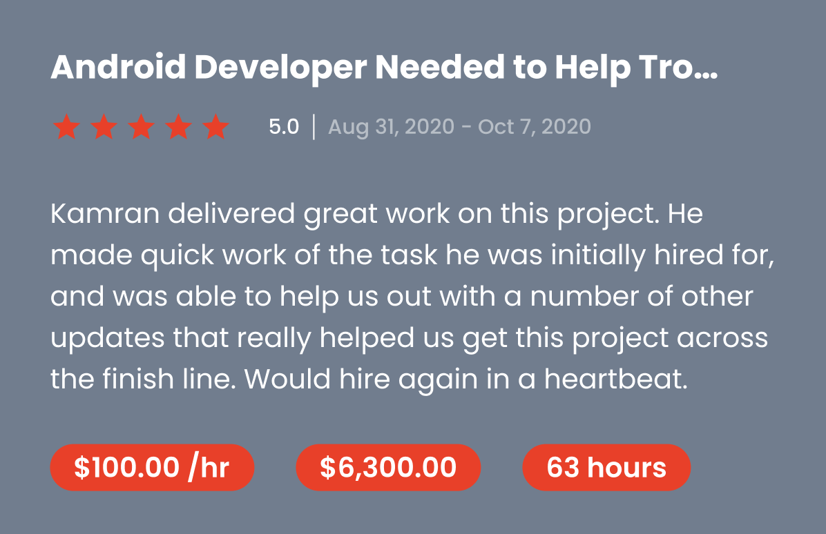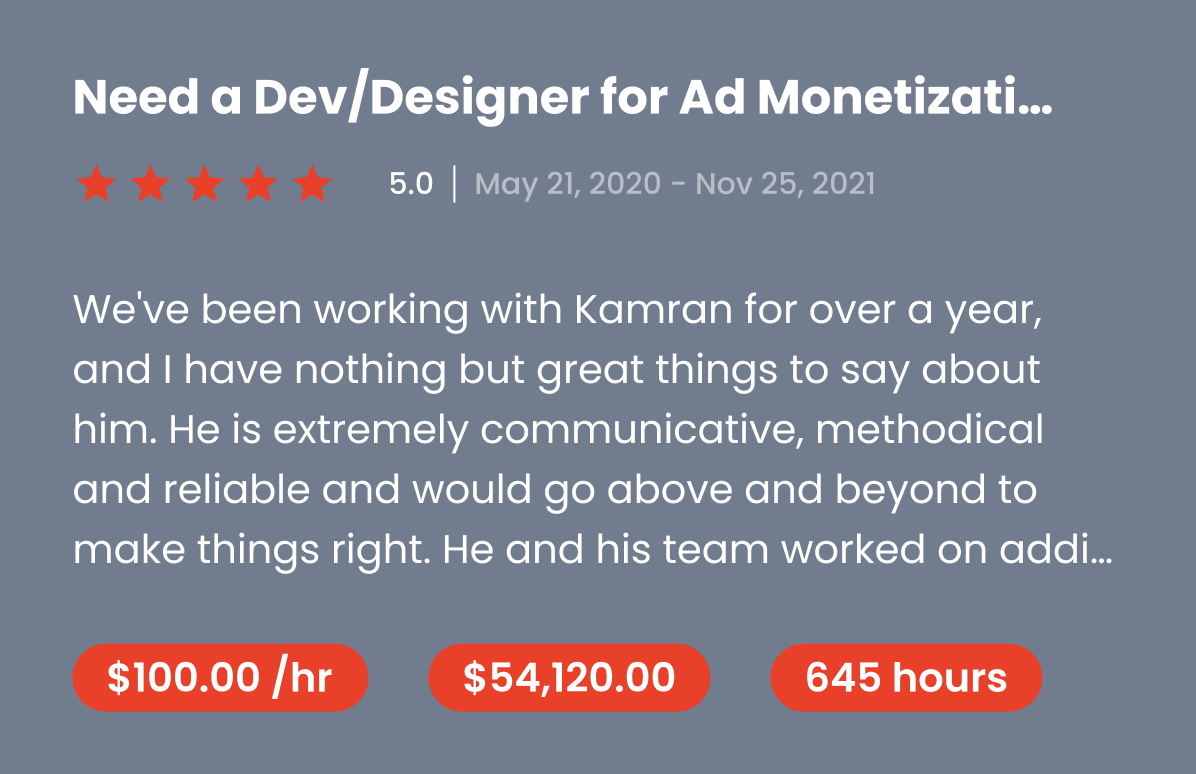 FireKamp a top rated US based agency on UpWork and verified on Clutch, which puts them in the top 1% of app developers in the digital development industry.